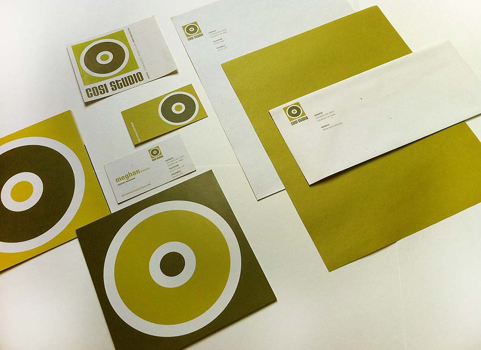 PROJECT: Branding Materials for Cosi Studio (+ logo, and brand standards) ROLE: Designer and Production / Project Manager.