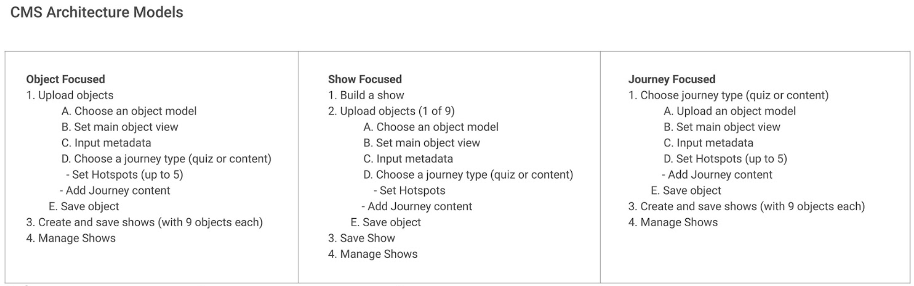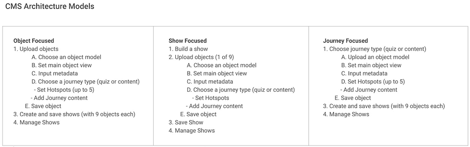 Collaboration + models for how to organize a user flow